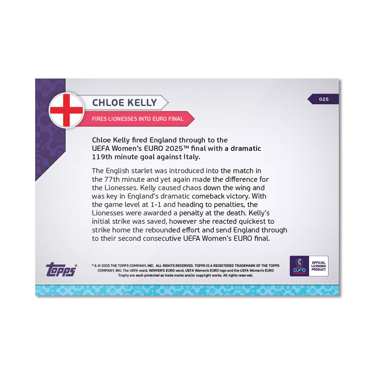 Chloe Kelly - UEFA Women’s EURO 2025™ Topps NOW® - Card 25